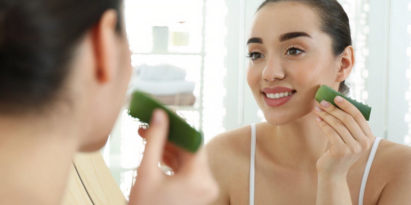 A woman applying aloe vera on the face
