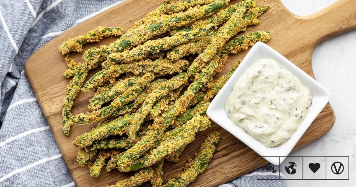 Amber Asakura These crispy green beans feature nutritional yeast and ground flaxseed