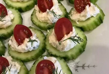 Cucumber Bites with Herbs Cream Cheese and Cherry Tomato