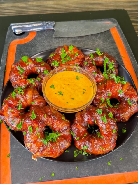 - Bacon Wrapped Burger Stuffed Onion Rings: Combining Two favorites
