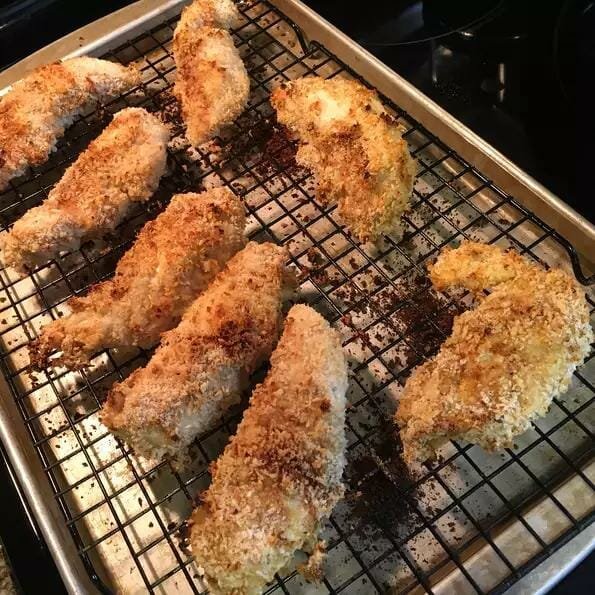 Preheat the oven to 390 degrees Fahrenheit. Then spread the panko breadcrumbs on a baking spray, then spray with oil. Allow to bake for about 3-5 minutes until it is light golden, then transfer to a bowl.