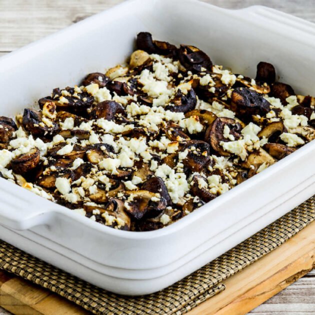 This tasty chicken dinner with balsamic vinegar, mushrooms, and creamy Feta cheese has about 11 net carbs per serving. If you want to make this as low as possible, look for a balsamic vinegar with the lowest possible carbs; there is quite a difference between different brands.