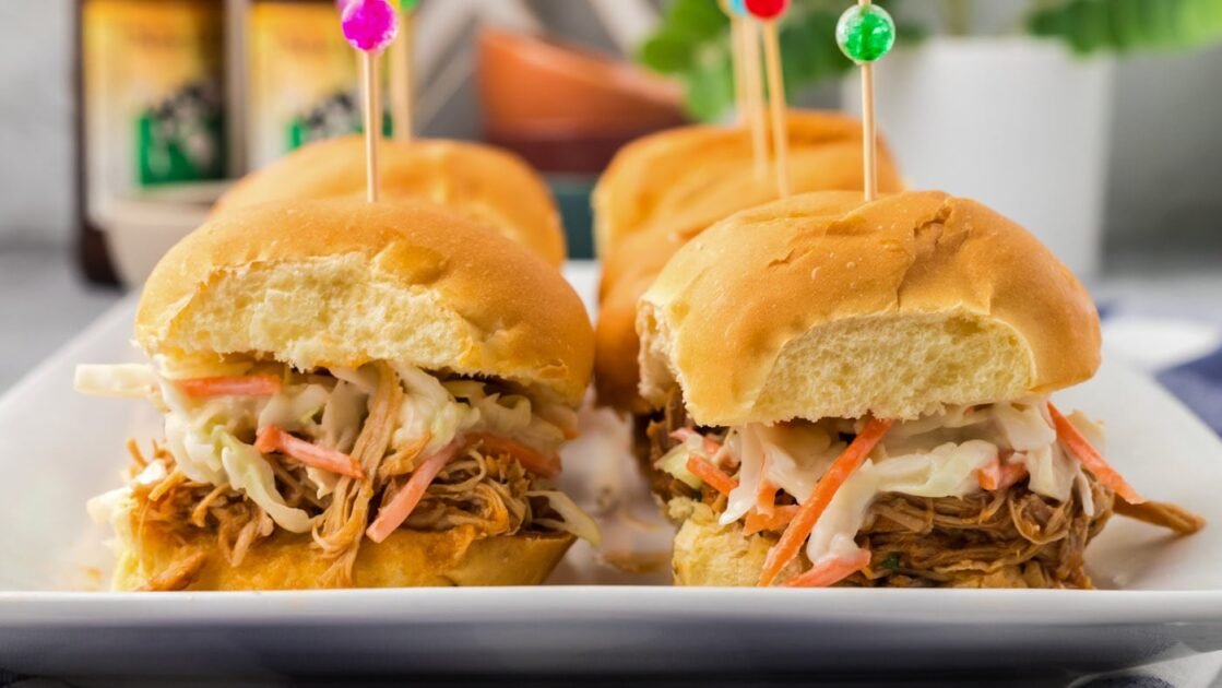 Tangy shredded chicken sandwiched between mini buns, these BBQ chicken sliders are an absolute crowd-pleaser and are simple to make in the pressure cooker!