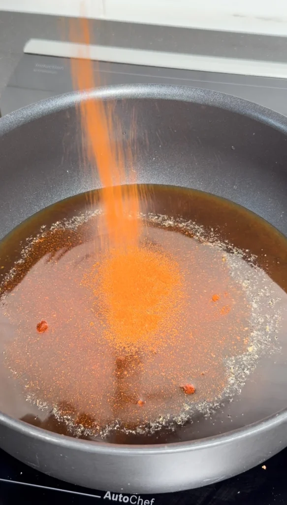 Taste and adjust the glaze – it should be sweet with noticeable bourbon depth, bright tang from the vinegar, and subtle smoke from the paprika. The flavor should be bold since it needs to stand up to the intensely smoky beef. Remove from heat and set aside until the burnt ends are ready. The glaze can be made up to a week ahead and refrigerated, then gently reheated before using.