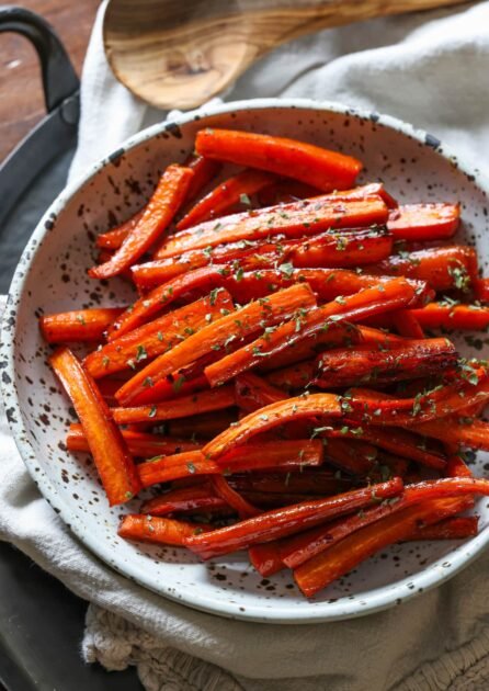 Looking for an easy side dish recipe for everyday dinners as well as being special enough to deserve a spot on your holiday table? This roasted carrots recipe is THE ONE! It’s both a little sweet and a little spicy but incredibly delicious! I serve this carrot recipe every Thanksgiving, but sometimes I make them justto snack on because I love them so much!