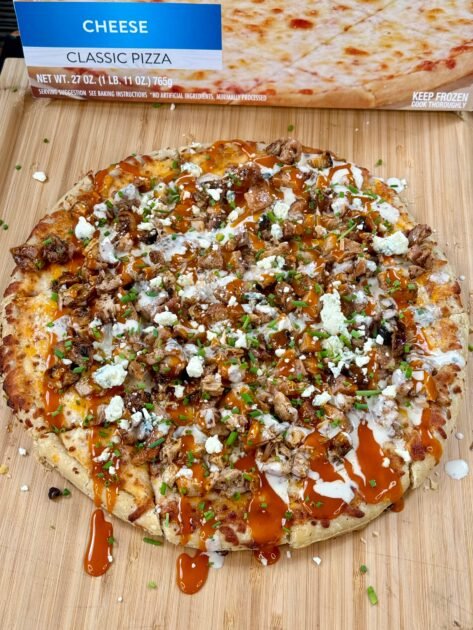 Cooking the Frozen Pizza: Take your chosen frozen cheese pizza – in this case, a Home Run Inn pizza – and cook it according to the instructions on the box. The choice of a pre-made pizza as a base is a convenient shortcut, ensuring a crispy crust and a consistent quality every time. This step is mostly hands-off, allowing you to focus on grilling the chicken and assembling the toppings. Keep an eye on the cooking time to ensure the base is perfectly golden and crispy, ready for its buffalo chicken transformation.