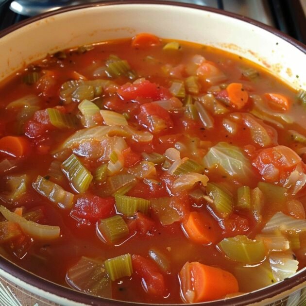 This weight-loss cabbage soup recipe with tomatoes, bell peppers, and green beans is easy to make and can be stored in the refrigerator for several days.