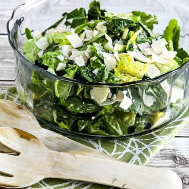 This Caesar Salad with Kale, Romaine, and Shaved Parmesan is perfect for low-carb or Keto Diets and a long as you use a moderate amount of dressing, this salad is a great choice for any phase of the original South Beach Diet.