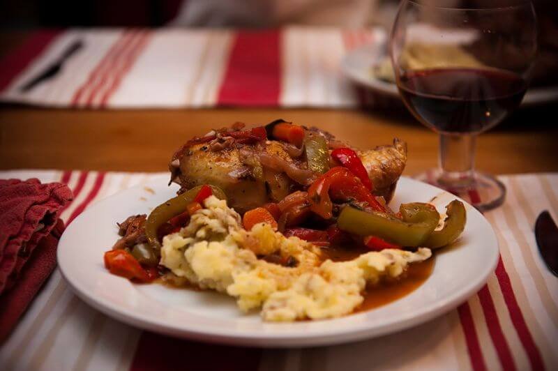 This is another dish that probably has as many variations as it does cooks who prepare it. I’m not a big fan of heavy red sauces so I made a pretty light version of the classic chicken and vegetable stew. It went VERY well over a mound of garlic mashed potatoes.