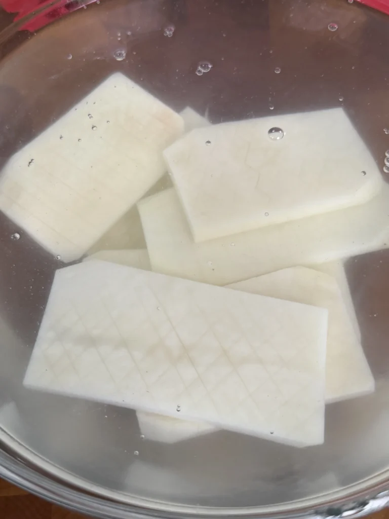 Transfer all the potato slices to a large bowl and cover them completely with cold water. Make sure every slice is submerged so starch can leach out evenly from all surfaces. Let the potatoes soak for 30 minutes at room temperature, which gives enough time for significant starch removal without soaking so long that you start affecting the potato’s internal structure.