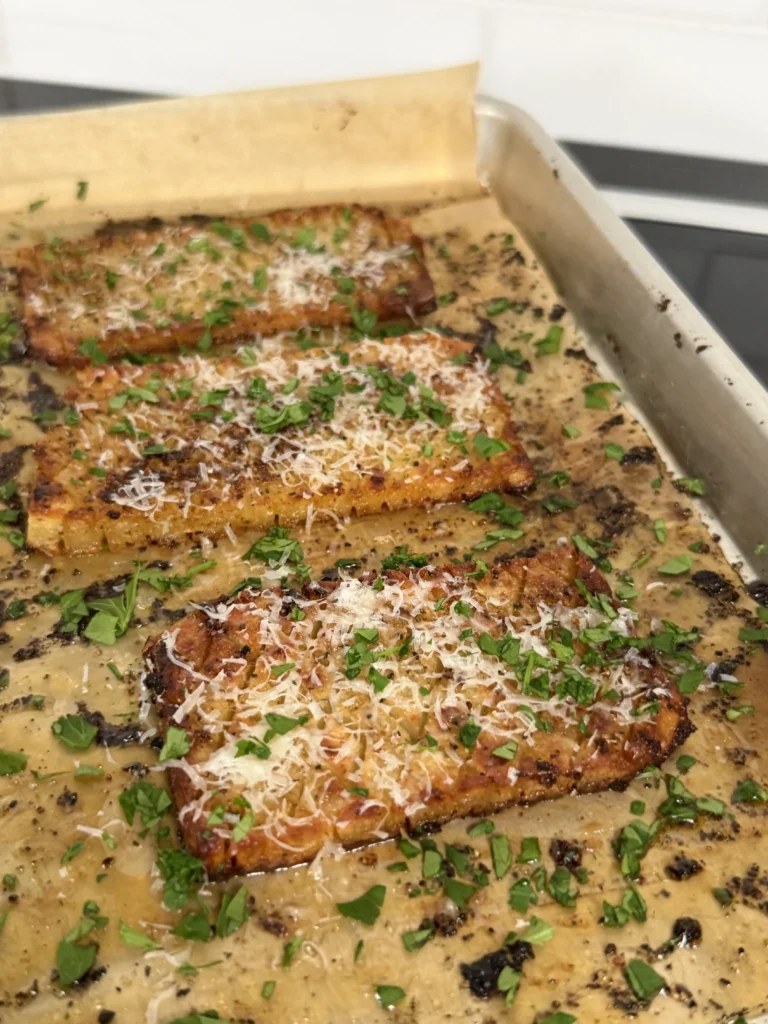 Remove the potatoes from the oven when they’re golden brown and crispy. Brush each accordion potato with melted butter if using, which adds richness and helps seasonings stick. Sprinkle the potatoes with black pepper, garlic powder, paprika, and grated Parmesan cheese, distributing the seasonings evenly over all the exposed surfaces.