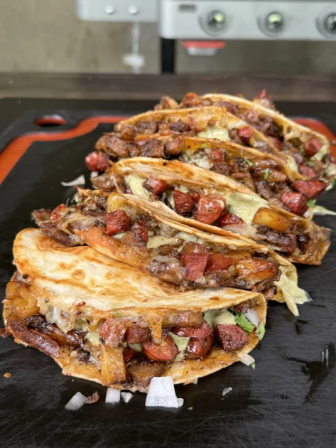 Whether you’re cooking for a family dinner or entertaining guests, these tacos are sure to be a hit. The method of two-zone cooking on a griddle ensures that the ingredients are perfectly cooked and combined, resulting in a dish that is both visually appealing and delicious.