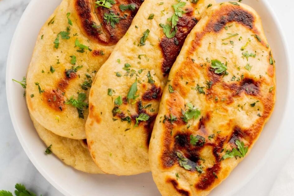 • To make this recipe dairy-free, use dairy-free butter or brush the naan with olive oil instead of butter. And the milk and yogurt with dairy-free alternatives. Check out this vegan naan bread recipe from Minimalist Baker. Check out this Paleo naan bread from My Heart Beets.