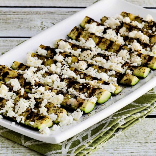 Grilled Greek Zucchini is a great side dish for low-carb or Keto diet plans, and for any phase of the South Beach Diet. Use a moderate of Feta Cheese if you’re strictly following South Beach.
