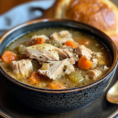Serve hot and enjoy a bowl of comforting turkey soup! Perfect for chilly days! 🍂🥣✨