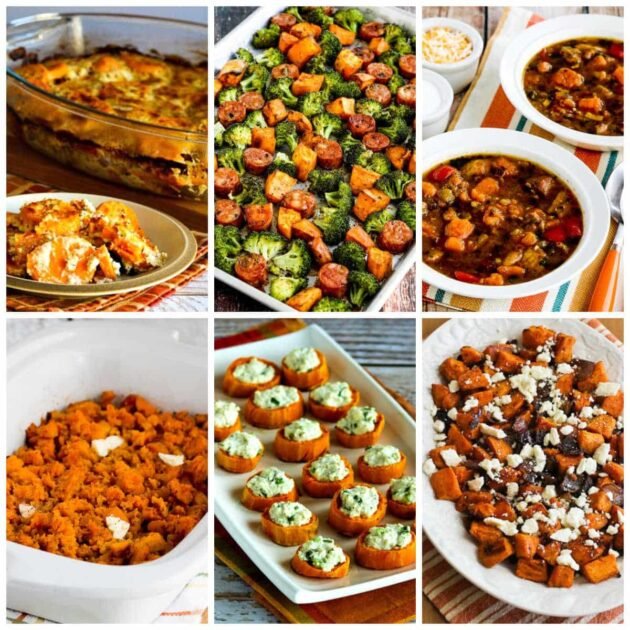 And many of these recipes can be made lower in carbs by using fewer sweet potatoes and more of the lower-carb ingredients, so notice those tips in this post. If you like sweet potatoes enough to indulge when it’s sweet potato season, I bet some of these favorite sweet potato recipes might be fun to add to your menu for a treat.