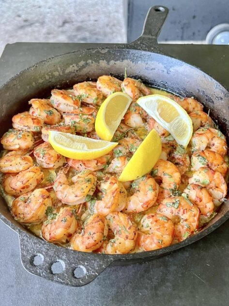 Well, here is an answer to your problems. Garlic Herb Smoked Shrimp, it’s delicious and fairly quick to make, done in 45 minutes. These shrimp are seasoned generously and then tossed in a cast iron with lemon, herbs and garlic just before they are placed on the smoker, the hickory smoke elevates the flavor and you will find yourself making these pretty often.