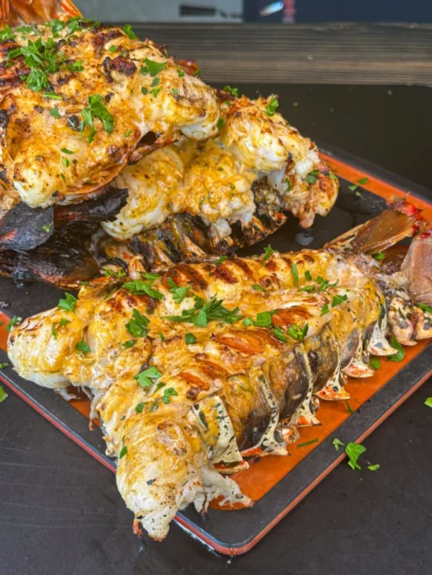 - Before serving, drizzle the grilled lemons over the lobster tails to enhance their natural sweetness with a burst of tangy citrus.