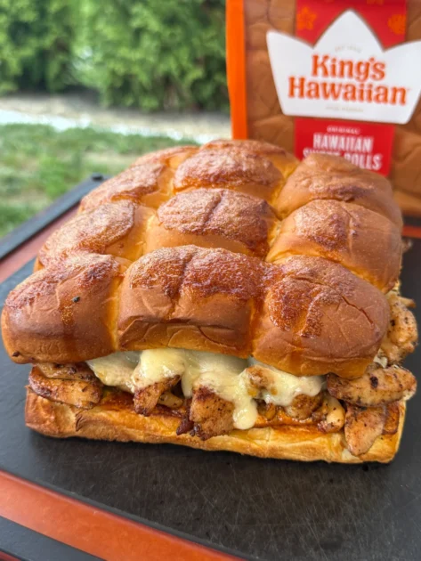 If desired, lightly toast the slider buns or Hawaiian rolls on the grill or in a toaster until golden brown. Spread additional spicy mayo baste on the bottom or top buns if extra heat is desired. Place one piece of basted hot chicken on each bottom bun. Top with 2-3 dill pickle chips for authentic Nashville flavor and crunch. Add optional shredded lettuce or spicy coleslaw for extra texture and cooling contrast. My preferred method is to assemble the sliders, place back into the smoker or grill to allow for the cheese to melt and get a good crust on the buns.