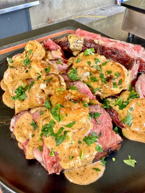 - Grilled Ribeye Steak with a Creamy Cajun Shrimp Sauce