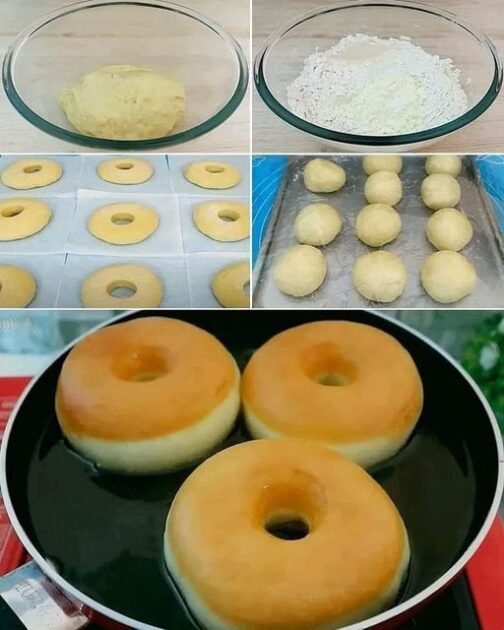 Cover the donuts with a kitchen towel and let them rise for another 30-45 minutes, until they are puffy.