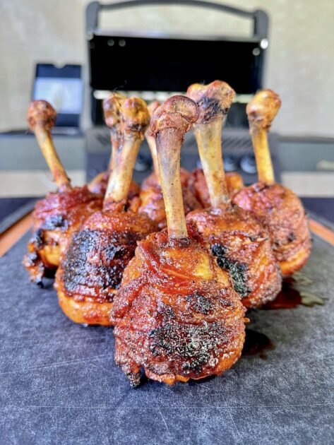 Have your grill set up for indirect, or your smoker set, at 275 degrees. I like to use a chicken drum rack for this process. The chicken leg rack can be found here https://amzn.to/3z8lyjA Once your temp is set add your lollipops and relax. Side note, I like to use hickory wood chunks for this.