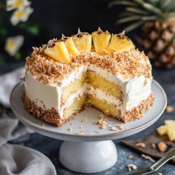 Slice and serve your tropical delight! Enjoy every bite! 🌴🍰✨