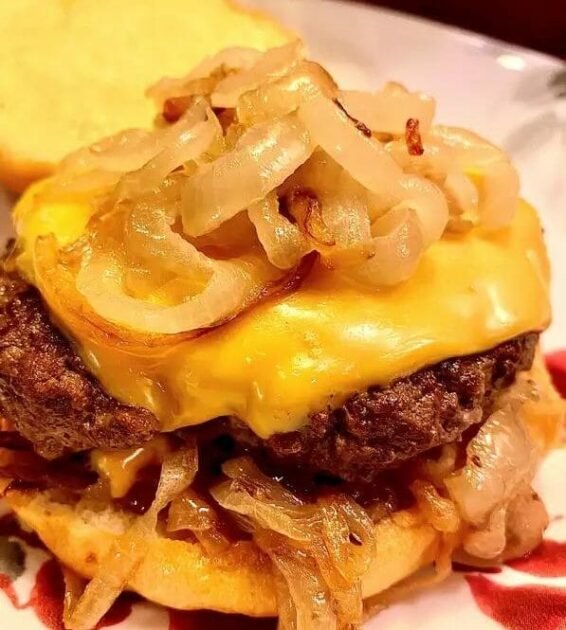 This popular fried onion burger is made with hamburger, cheese and onions. A mouth-watering delicacy that’s perfect as an appetizer.