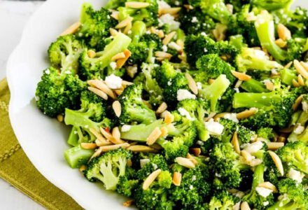 Broccoli Salad with Feta and Almonds is amazing with the fried almonds adding crunch and the Feta adding tangy flavor. Please, DO NOT skip the fried almonds…