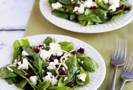 Spinach Salad with Goat Cheese also has almonds and optional cranberries, and this is perfect when you want a special salad! You can skip the dried cranberries…