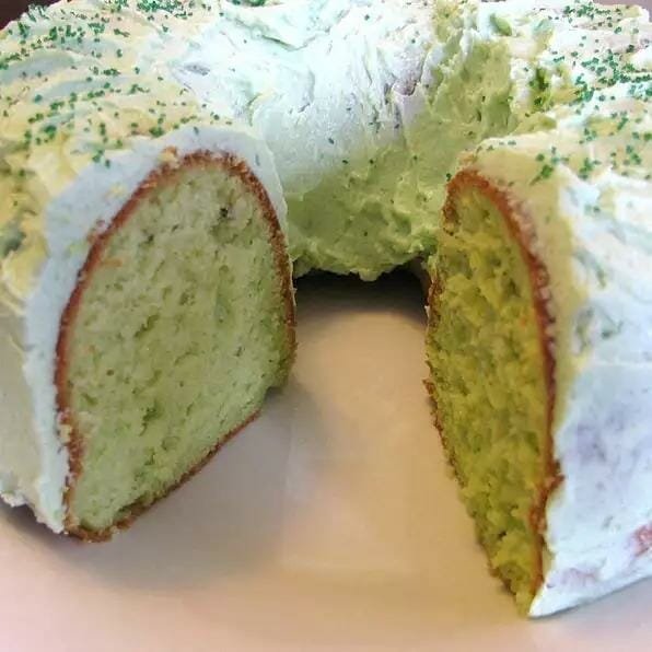 Now, let’s talk about the details. The pudding mix must be instant and you can choose to make this cake as a layer cake or in a bundt pan. If you’re looking for a festive touch, this recipe is ideal for St. Patrick’s Day because of the green tint. But, if you’re not a fan of food coloring, you can leave it out or opt for natural food coloring.