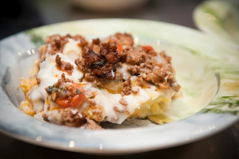 There are three parts here. The ragout, or meat; the bechamel and the polenta. There are no rules so vary them as you like.