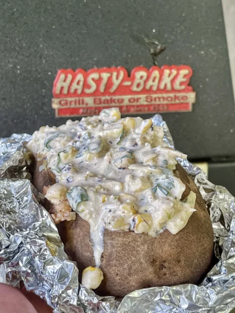 What happens when you identify three things you love to eat? Well, in this case, I put them all together and came up with the Pulled Pork Elote Baked Potato. Let me tell you, this did not disappoint one bit! It did involve a lot of work but the payout was Absolutely Money! Okay, let’s get into the recipe!