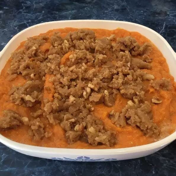 Sweet potato casserole with pecan streusel is more than just a dish on our holiday table; it’s a cherished tradition in my family. The debate over whether to top it with marshmallows or pecan streusel always sparks lively discussions, but in our household, we proudly stand as a team pecan streusel family!