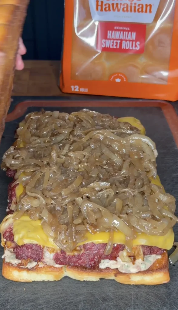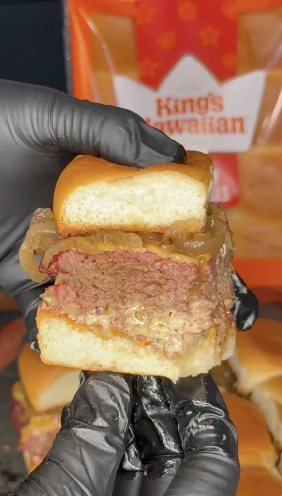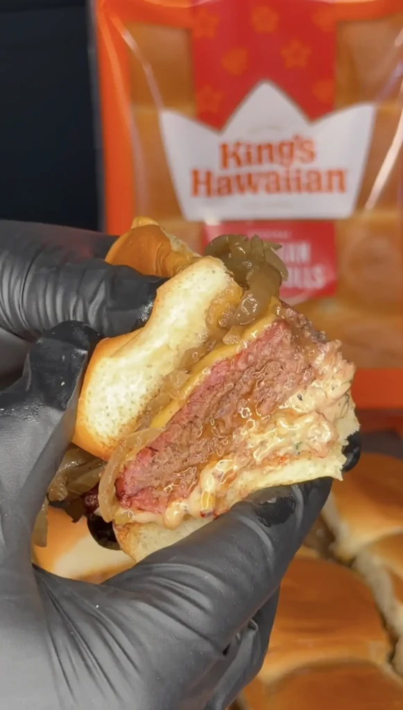 These Hawaiian roll sliders take about 2 hours total including smoking the beef sheet, caramelizing onions, and finishing the assembled sliders. The innovative beef sheet method creates uniform portions. Each slider gets equal beef distribution. You cut them after baking rather than forming individual patties. This saves time and creates cleaner presentation. Perfect for parties, game day, and gatherings where you need impressive sliders that feed a crowd.