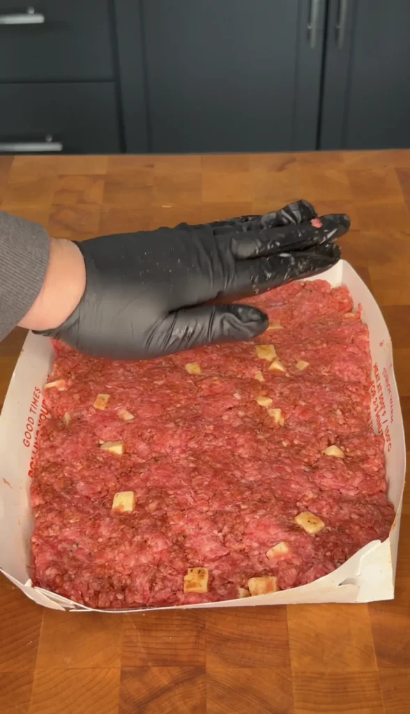Don’t pack the beef too tightly when forming the sheet. Overworked, densely packed ground beef is more prone to cracking. Use light pressure to shape the rectangle. Loose packing creates tender texture and reduces cracking risk.