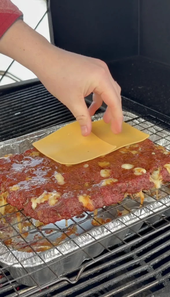For best coverage, break cheese slices into smaller pieces and arrange them like a puzzle. This gives you more control than trying to cover the entire beef sheet with whole slices. Smaller pieces conform better to the beef sheet dimensions.