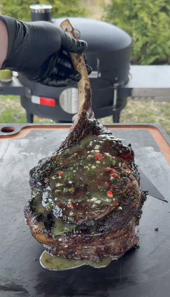 Smoked Tomahawk Steaks with Coal-Smoked Fresno Honey Garlic Butter