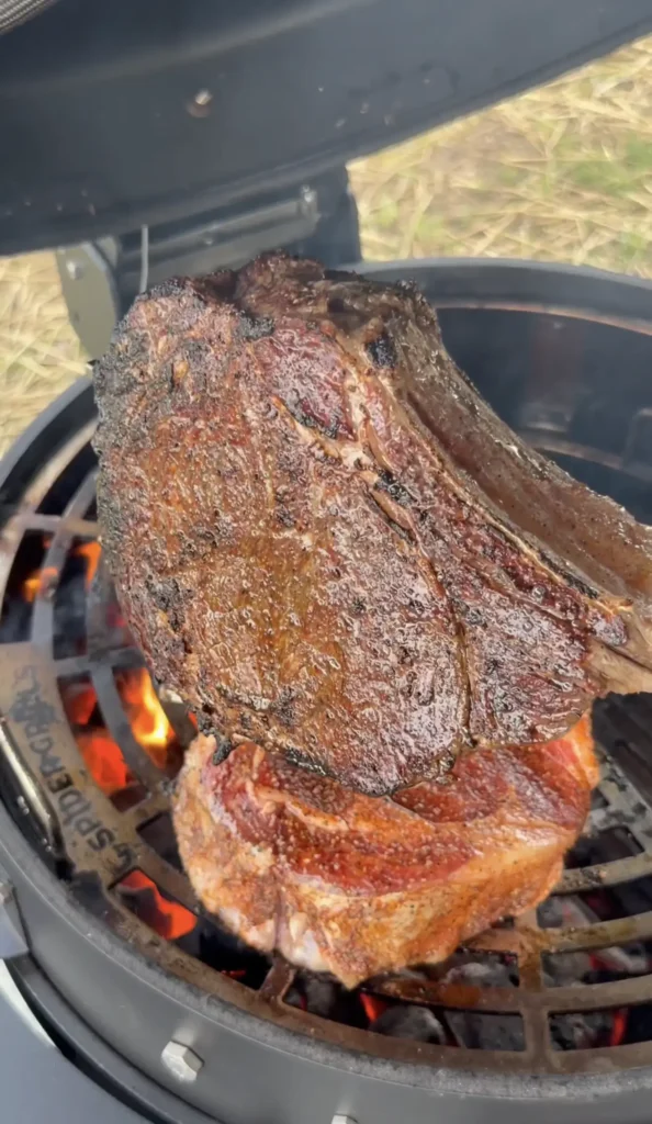 You can cook this smoked tomahawk steak recipe on any grill or smoker that gives you control over both high heat and low-temperature indirect cooking. The key is having the ability to sear at 500 to 600 degrees and then drop to 250 degrees for the smoking finish.