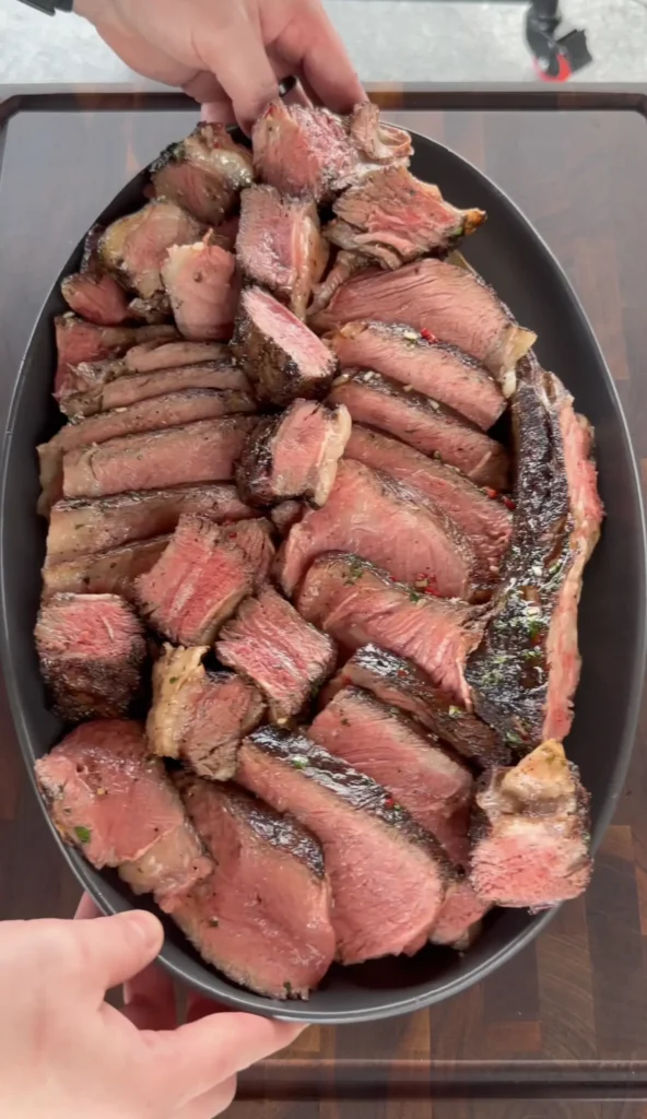 Resting is not optional with a steak this large. Skipping the rest causes the juices to pour out the moment you cut into the meat, leaving you with a dry steak and a puddle on the cutting board.