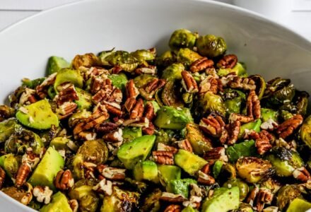Elevate Your Holiday Feast: Roasted Brussels Sprouts with Avocado and Pecans