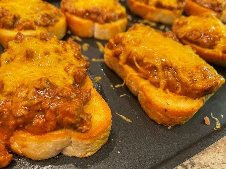 7-Place your Sloppy Joe Mixture on top of your golden-brown Texas Toast