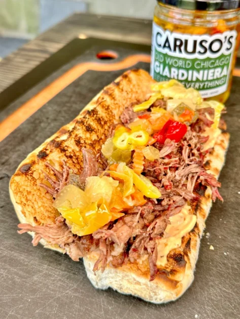 When I first tried this sandwich, I was blown away by the combination of flavors and the messy goodness of dipping it in the Au Jus. And what sets each sandwich apart is the different variations of Giardiniera used as a topping. So, I set out to create my own version of this sandwich, and I am excited to share this recipe with you.