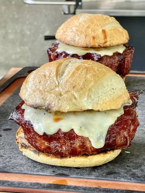 - Have your smoker ready to roll at 275 degrees with some hickory smoke. Place the Boss Burgers on the smoker and let them go for about 30-45 mins and flip them. Before flipping, glaze with your favorite BBQ sauce. You want to flip them for an even cook.