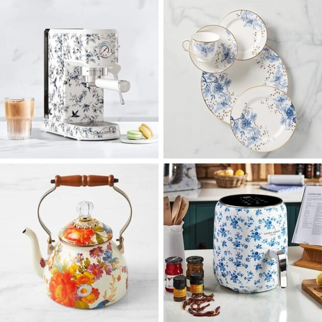 Mix, Don’t Match: You do not need a % floral kitchen. A single botanical air fryer or a set of floral place settings can provide enough character to brighten a neutral space.