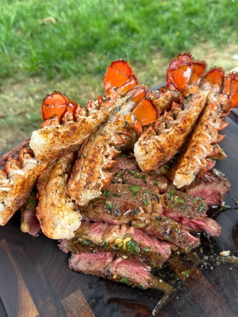 While steak rests, cook your seafood. For lobster tails, grill for 5-6 minutes until meat is opaque. For shrimp, cook for 2-3 minutes per side until pink and firm. Don’t overcook seafood as it becomes tough quickly.