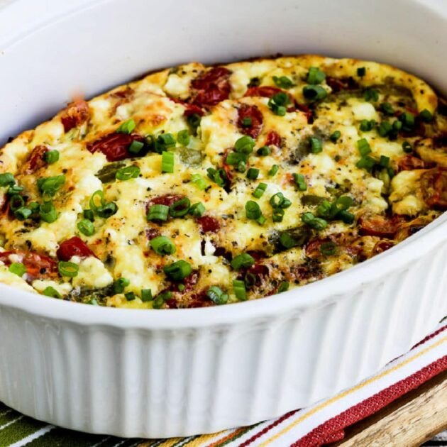 I’ve made a lot of low-carb breakfast casseroles through the years by simply combining what’s in the fridge, and I think this new Vegetable Egg Bake combination is definitely a good one! I hope you try it the next time you end up with cherry tomatoes that are begging to be used.