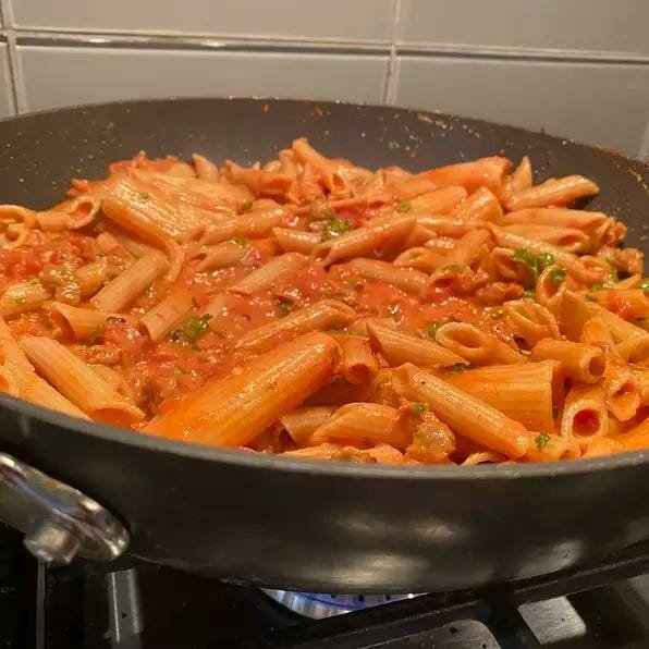 Fat rigatoni works with this, and it is something that’s great for catching more sauce, but it’s called this because it just sounds better like this. The add-ins and pasta are de3finitely a good addition to this.